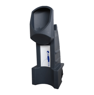 Dieser mobile Urinalstand ist dank seiner zwei Räder und seines geringen Gewichts besonders flexibel einsetzbar.